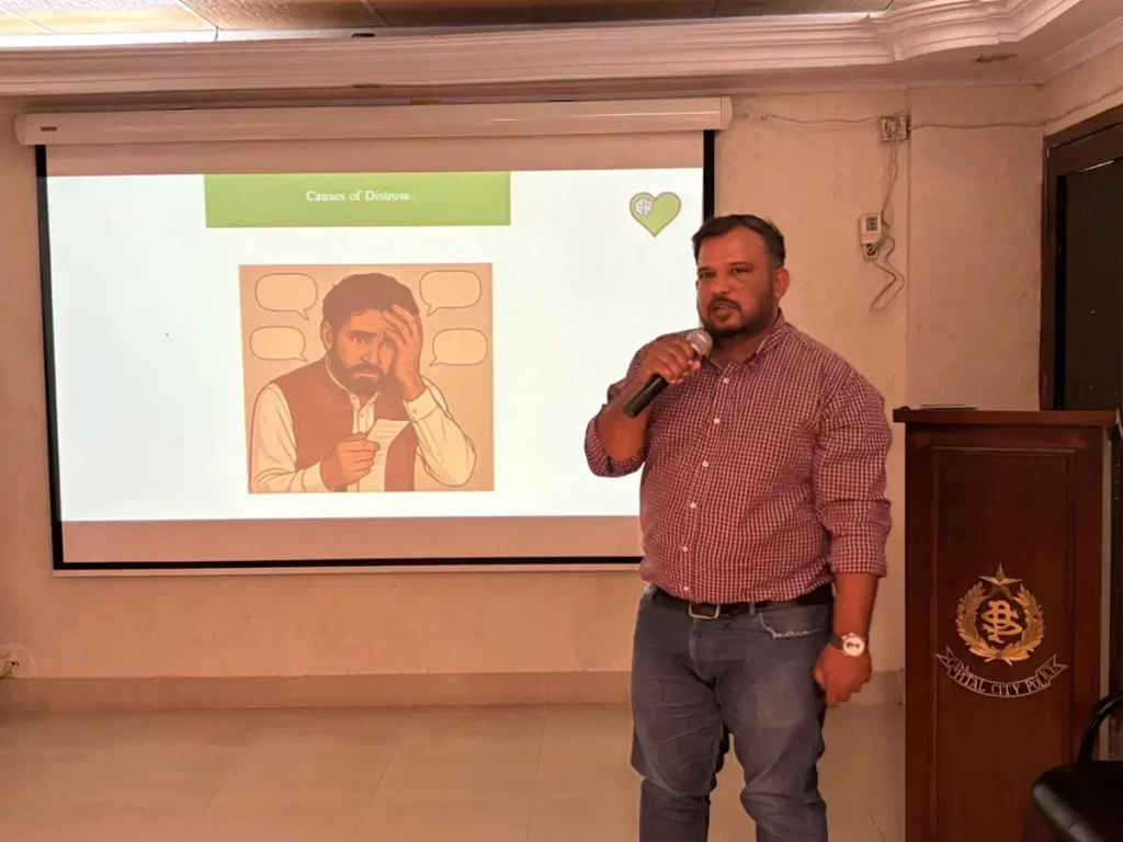 On April 17, 2025, Taskeen Health Initiative partnered with the Police School of Investigation at Garden Headquarters to deliver an impactful wellbeing session for police personnel. The session focused on key aspects of mental health and wellbeing, emphasizing stress management, emotional regulation, practical coping strategies, and mindfulness. Tailored for individuals working in mentally and physically […]